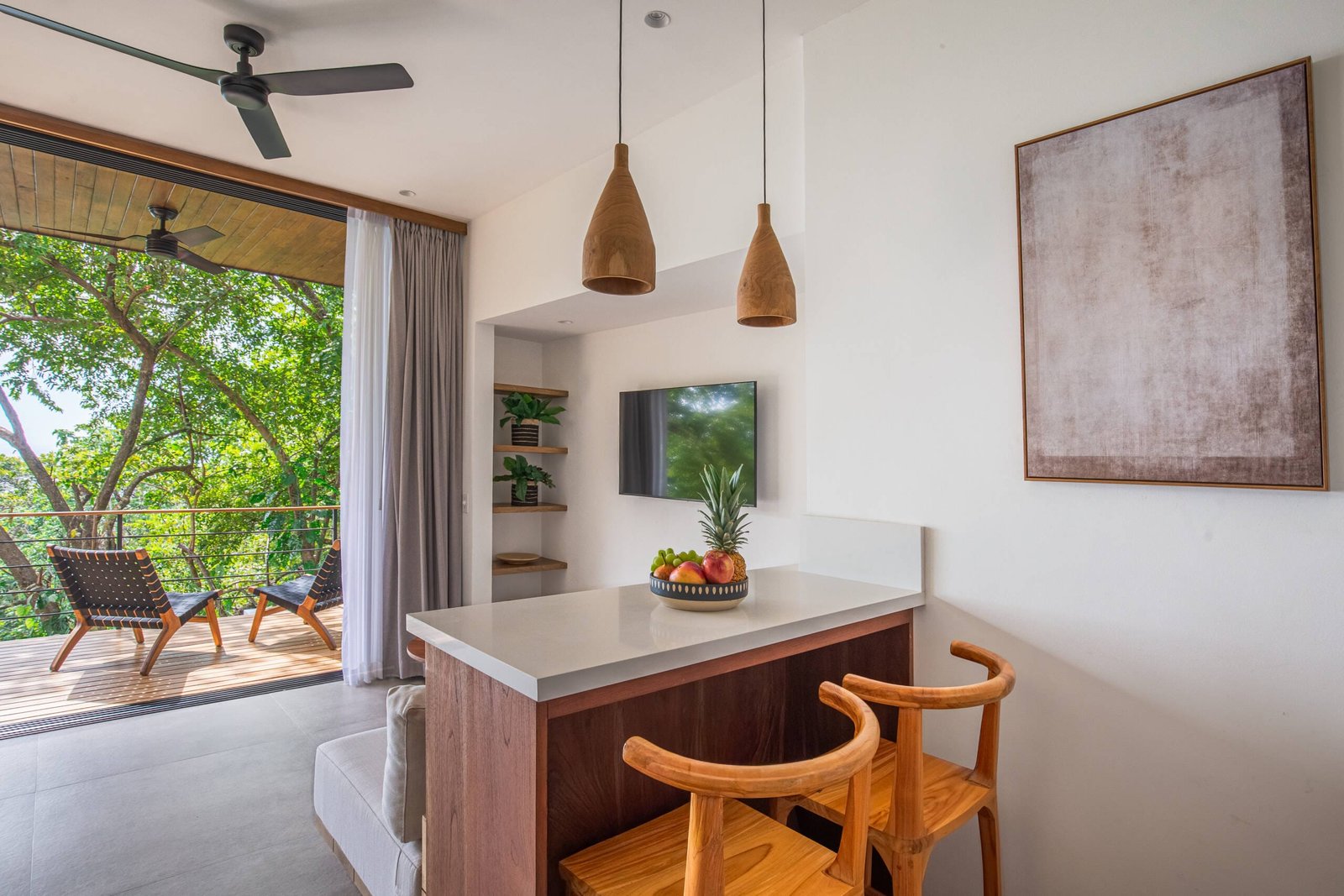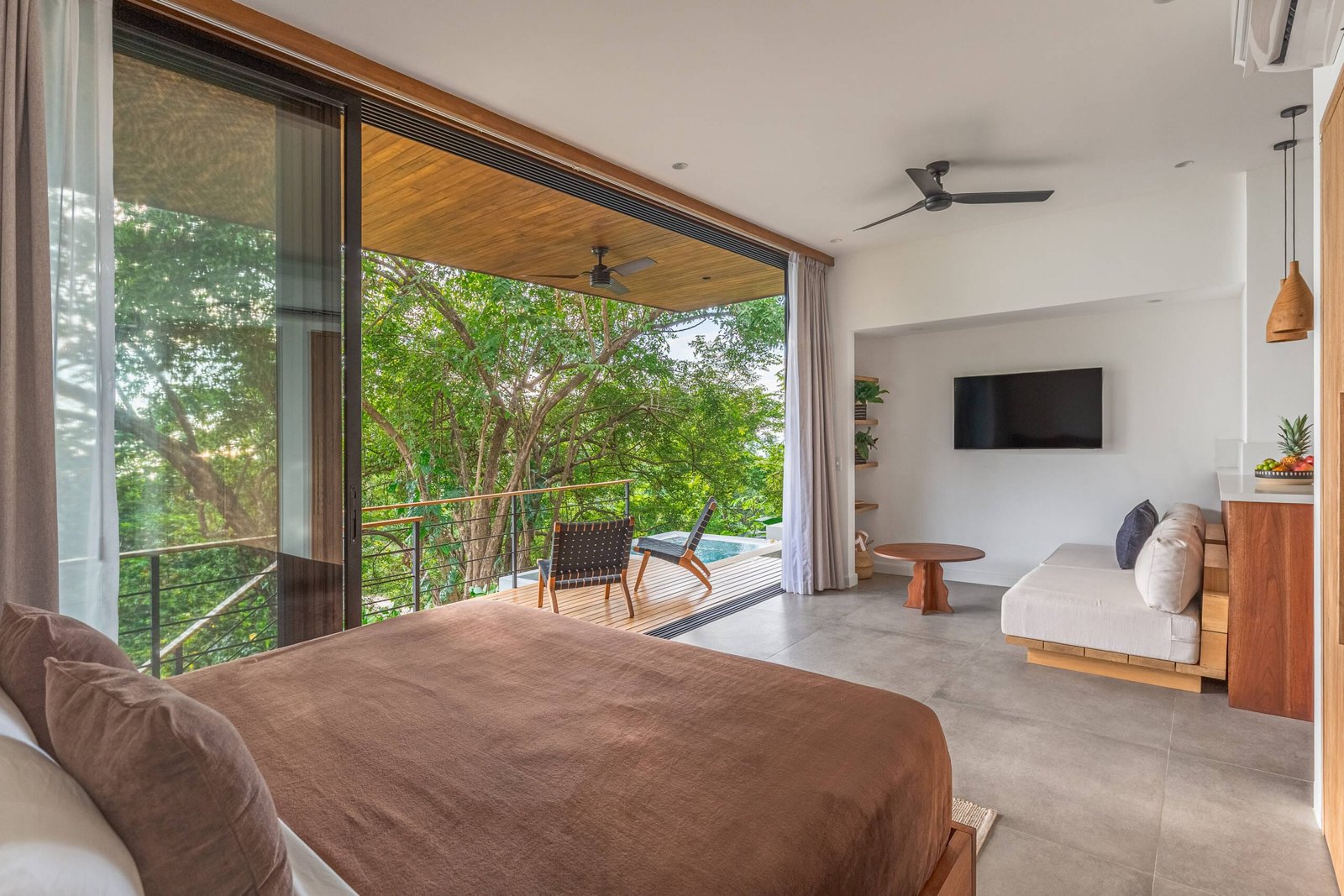Our compact studio delivers sophisticated comfort for 2 guests or serves as the perfect staff quarters with kitchenette and private amenities. Estate guests booking Villa Tenowi benefit from preferred rates when adding Studio Tawi to their reservation.